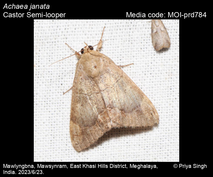 Anonymous 2026. Achaea janata (Linnaeus, 1758) – Castor Semi-looper. In Sondhi, S., R.P. Singh, G. Iyer, J. D'silva and K. Kunte (Chief Editors). Butterflies of India, v. 4.11. Published by the Indian Foundation for Butterflies. URL: https://www.mothsofindia.org/achaea-janata, accessed 2026/02/10.