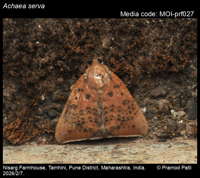 Anonymous 2026. Achaea serva (Fabricius, 1775) – . In Sondhi, S., R.P. Singh, G. Iyer, J. D'silva and K. Kunte (Chief Editors). Butterflies of India, v. 4.11. Published by the Indian Foundation for Butterflies. URL: https://www.mothsofindia.org/achaea-serva, accessed 2026/03/15.
