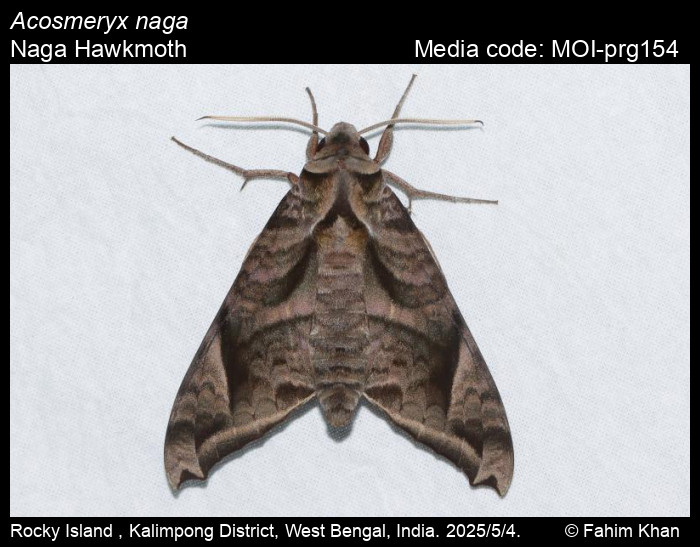 Anonymous 2026. Acosmeryx naga (Moore, [1858]) – Naga Hawkmoth. In Sondhi, S., R.P. Singh, G. Iyer, J. D'silva and K. Kunte (Chief Editors). Butterflies of India, v. 4.12. Published by the Indian Foundation for Butterflies. URL: https://www.mothsofindia.org/acosmeryx-naga, accessed 2026/04/01.