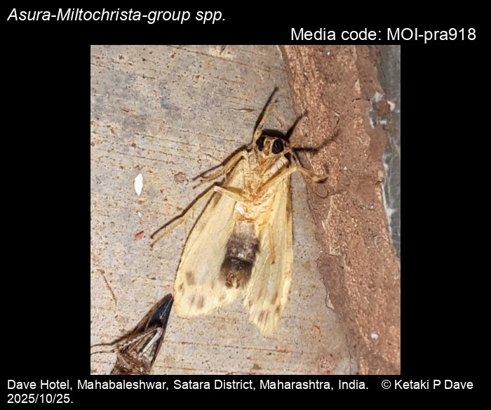 Anonymous 2025. Asura-Miltochrista-group spp. NA – . In Sondhi, S., R.P. Singh, G. Iyer, J. D'silva and K. Kunte (Chief Editors). Butterflies of India, v. 4.11. Published by the Indian Foundation for Butterflies. URL: https://www.mothsofindia.org/asura-miltochrista-group-spp, accessed 2025/11/06.