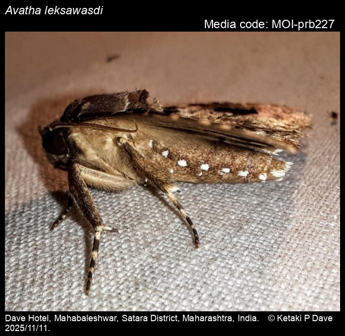 Anonymous 2026. Avatha leksawasdi Kočak & Kemal, 2006 – . In Sondhi, S., R.P. Singh, G. Iyer, J. D'silva and K. Kunte (Chief Editors). Butterflies of India, v. 4.11. Published by the Indian Foundation for Butterflies. URL: https://www.mothsofindia.org/avatha-leksawasdi, accessed 2026/02/15.