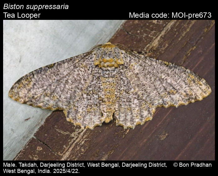 Anonymous 2026. Biston suppressaria (Guenée, [1858]) – Tea Looper. In Sondhi, S., R.P. Singh, G. Iyer, J. D'silva and K. Kunte (Chief Editors). Butterflies of India, v. 4.11. Published by the Indian Foundation for Butterflies. URL: https://www.mothsofindia.org/biston-suppressaria, accessed 2026/03/21.