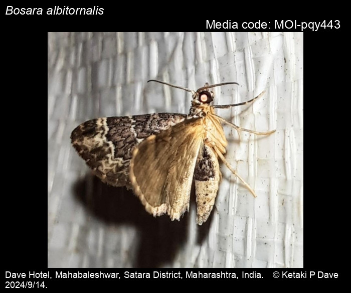 Anonymous 2025. Bosara albitornalis (Prout, 1958) – . In Sondhi, S., R.P. Singh, G. Iyer, J. D'silva and K. Kunte (Chief Editors). Butterflies of India, v. 4.11. Published by the Indian Foundation for Butterflies. URL: https://www.mothsofindia.org/bosara-albitornalis, accessed 2025/11/01.