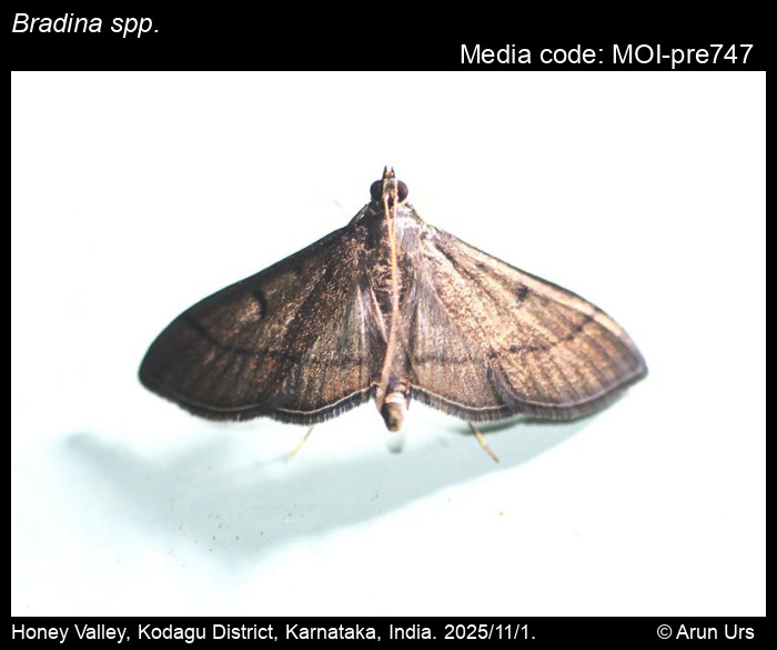 Anonymous 2026. Bradina spp. Lederer, 1863 – . In Sondhi, S., R.P. Singh, G. Iyer, J. D'silva and K. Kunte (Chief Editors). Butterflies of India, v. 4.11. Published by the Indian Foundation for Butterflies. URL: https://www.mothsofindia.org/bradina-spp, accessed 2026/03/19.