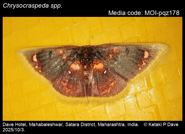 Anonymous 2025. Chrysocraspeda spp. Swinhoe, 1893 – . In Sondhi, S., R.P. Singh, G. Iyer, J. D'silva and K. Kunte (Chief Editors). Butterflies of India, v. 4.11. Published by the Indian Foundation for Butterflies. URL: https://www.mothsofindia.org/chrysocraspeda-spp, accessed 2025/10/24.
