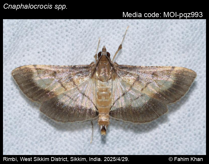 Anonymous 2025. Cnaphalocrocis spp. Lederer, 1863 – . In Sondhi, S., R.P. Singh, G. Iyer, J. D'silva and K. Kunte (Chief Editors). Butterflies of India, v. 4.11. Published by the Indian Foundation for Butterflies. URL: https://www.mothsofindia.org/cnaphalocrocis-spp, accessed 2025/10/31.