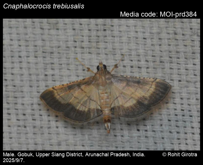 Anonymous 2026. Cnaphalocrocis trebiusalis (Walker, [1859]) – . In Sondhi, S., R.P. Singh, G. Iyer, J. D'silva and K. Kunte (Chief Editors). Butterflies of India, v. 4.11. Published by the Indian Foundation for Butterflies. URL: https://www.mothsofindia.org/cnaphalocrocis-trebiusalis, accessed 2026/02/07.
