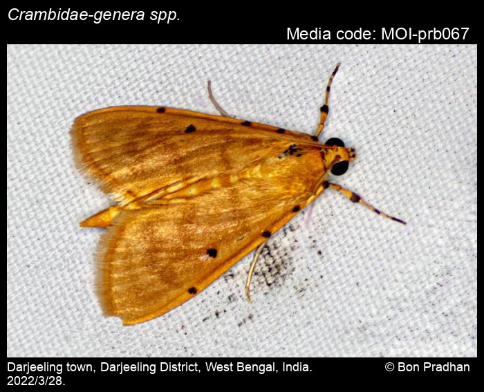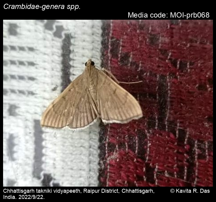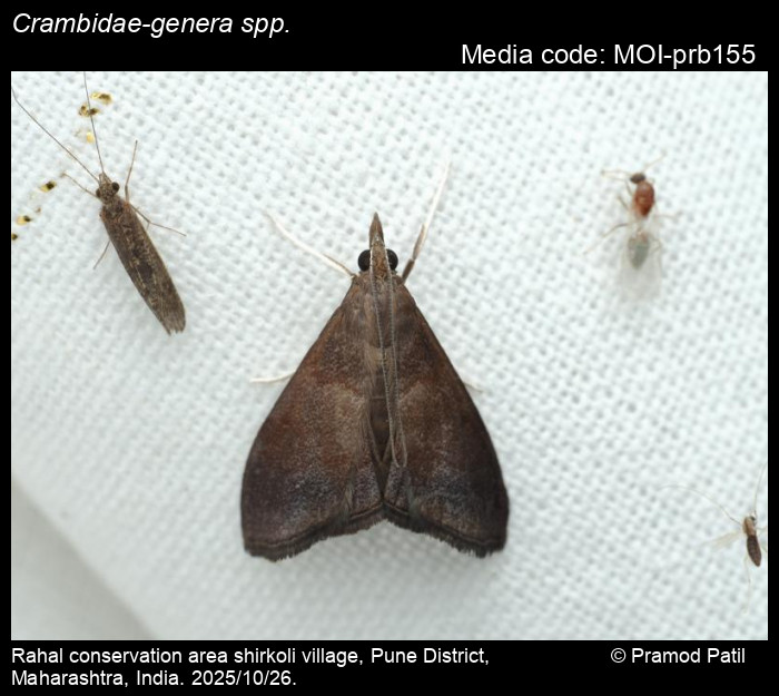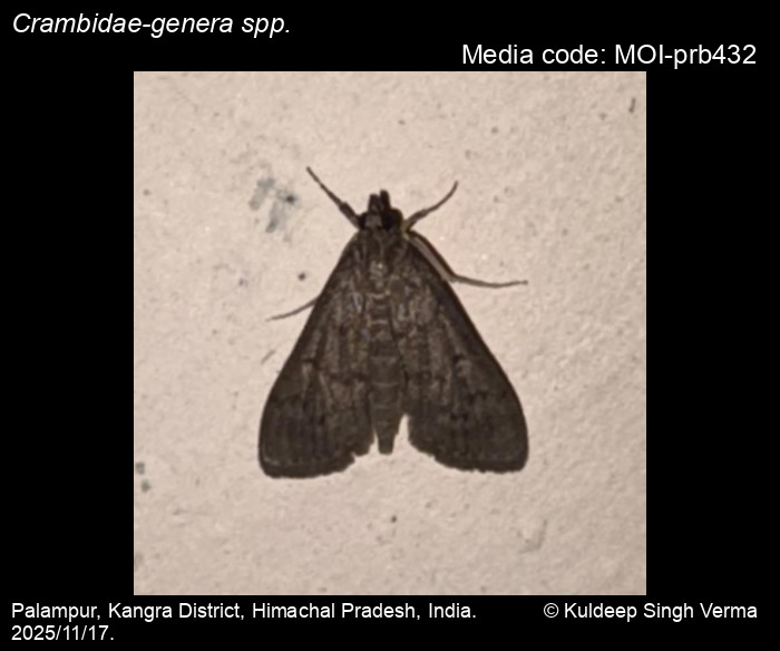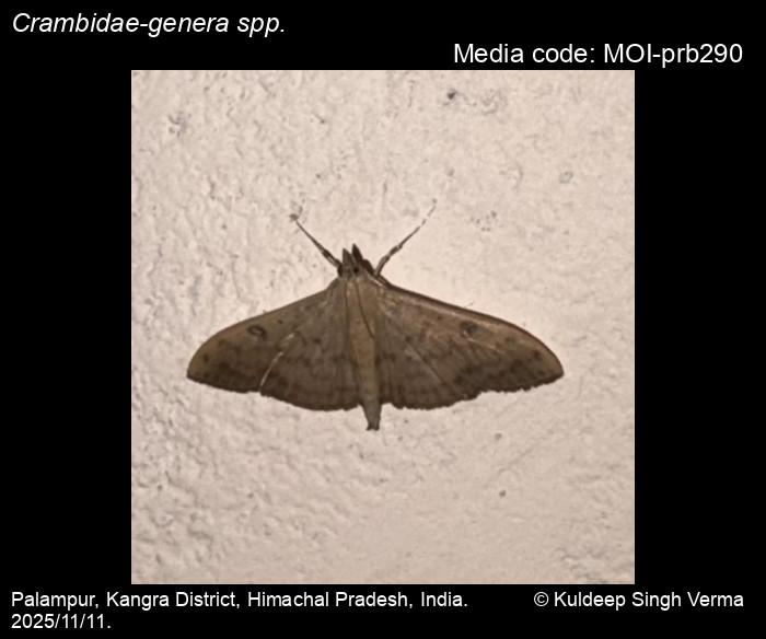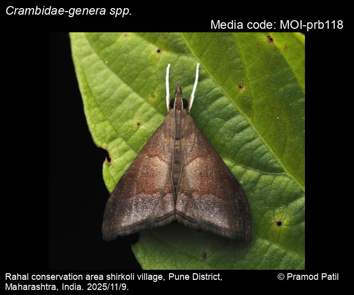 Anonymous 2025. Crambidae-genera spp. Latreille, 1810 – . In Sondhi, S., R.P. Singh, G. Iyer, J. D'silva and K. Kunte (Chief Editors). Butterflies of India, v. 4.1. Published by the Indian Foundation for Butterflies. URL: https://www.mothsofindia.org/crambidae-genera-spp, accessed 2025/12/23.