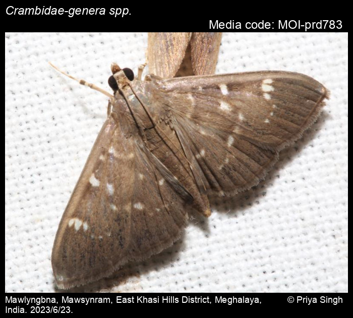 Anonymous 2026. Crambidae-genera spp. Latreille, 1810 – . In Sondhi, S., R.P. Singh, G. Iyer, J. D'silva and K. Kunte (Chief Editors). Butterflies of India, v. 4.11. Published by the Indian Foundation for Butterflies. URL: https://www.mothsofindia.org/crambidae-genera-spp, accessed 2026/02/15.