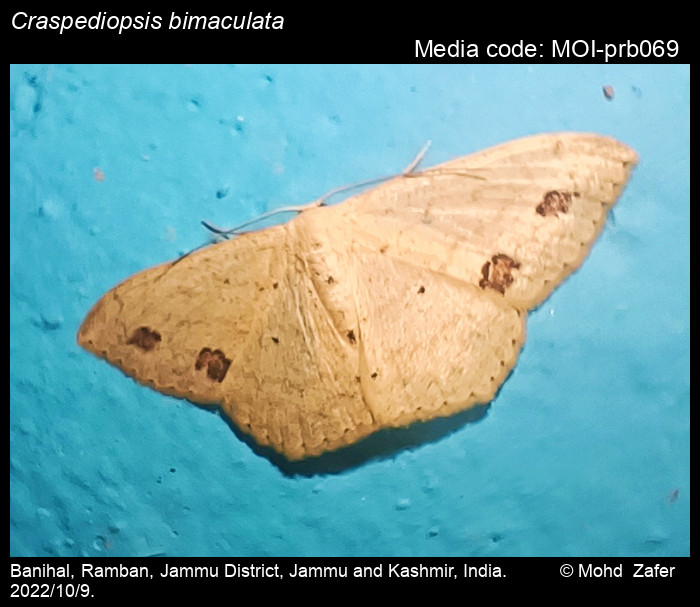 Anonymous 2026. Craspediopsis bimaculata Warren, 1895 – . In Sondhi, S., R.P. Singh, G. Iyer, J. D'silva and K. Kunte (Chief Editors). Butterflies of India, v. 4.1. Published by the Indian Foundation for Butterflies. URL: https://www.mothsofindia.org/craspediopsis-bimaculata, accessed 2026/01/22.