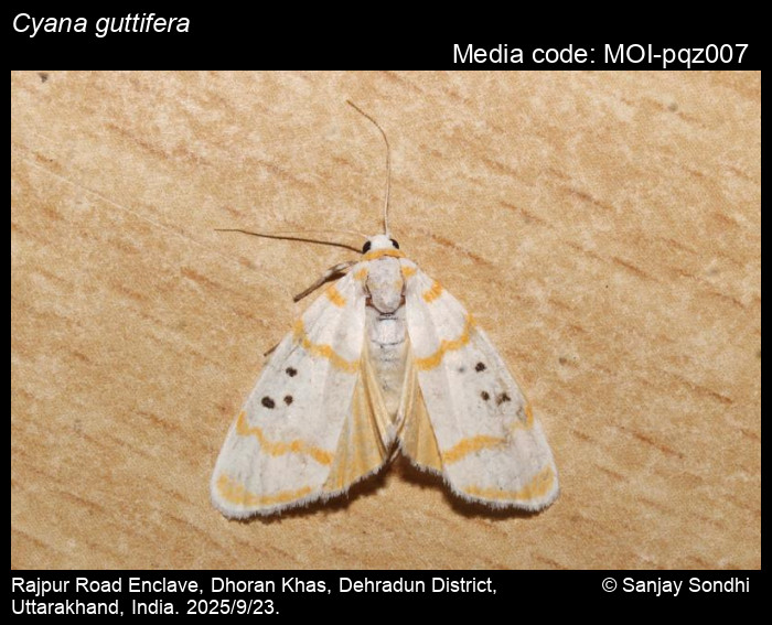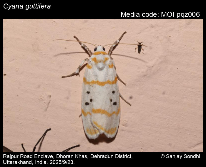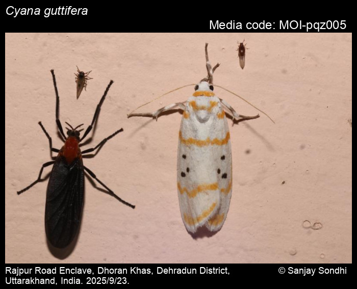 Anonymous 2025. Cyana guttifera (Walker, 1856) – . In Sondhi, S., R.P. Singh, G. Iyer, J. D'silva and K. Kunte (Chief Editors). Butterflies of India, v. 4.11. Published by the Indian Foundation for Butterflies. URL: https://www.mothsofindia.org/cyana-guttifera, accessed 2025/10/18.