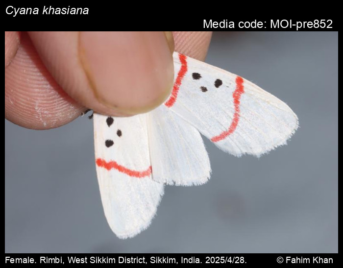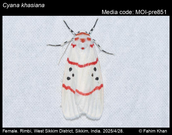 Anonymous 2026. Cyana khasiana Hampson, 1897 – . In Sondhi, S., R.P. Singh, G. Iyer, J. D'silva and K. Kunte (Chief Editors). Butterflies of India, v. 4.11. Published by the Indian Foundation for Butterflies. URL: https://www.mothsofindia.org/cyana-khasiana, accessed 2026/03/19.