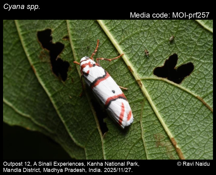 Anonymous 2026. Cyana spp. Walker, 1854 – . In Sondhi, S., R.P. Singh, G. Iyer, J. D'silva and K. Kunte (Chief Editors). Butterflies of India, v. 4.11. Published by the Indian Foundation for Butterflies. URL: https://www.mothsofindia.org/cyana-spp, accessed 2026/03/21.