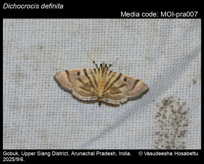 Anonymous 2025. Dichocrocis definita (Butler, 1889) – . In Sondhi, S., R.P. Singh, G. Iyer, J. D'silva and K. Kunte (Chief Editors). Butterflies of India, v. 4.11. Published by the Indian Foundation for Butterflies. URL: https://www.mothsofindia.org/dichocrocis-definita, accessed 2025/10/21.