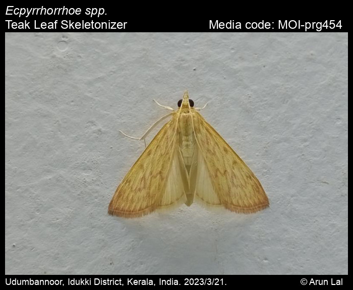Anonymous 2026. Ecpyrrhorrhoe spp. Moore, 1886 – Teak Leaf Skeletonizer. In Sondhi, S., R.P. Singh, G. Iyer, J. D'silva and K. Kunte (Chief Editors). Butterflies of India, v. 4.12. Published by the Indian Foundation for Butterflies. URL: https://www.mothsofindia.org/Ecpyrrhorrhoe-spp, accessed 2026/04/07.