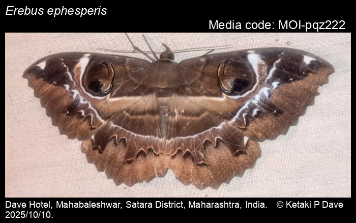 Anonymous 2025. Erebus ephesperis (Hübner, [1823]) – . In Sondhi, S., R.P. Singh, G. Iyer, J. D'silva and K. Kunte (Chief Editors). Butterflies of India, v. 4.11. Published by the Indian Foundation for Butterflies. URL: https://www.mothsofindia.org/erebus-ephesperis, accessed 2025/10/15.