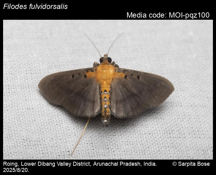 Anonymous 2025. Filodes fulvidorsalis (Hübner, 1832) – . In Sondhi, S., R.P. Singh, G. Iyer, J. D'silva and K. Kunte (Chief Editors). Butterflies of India, v. 4.11. Published by the Indian Foundation for Butterflies. URL: https://www.mothsofindia.org/filodes-fulvidorsalis, accessed 2025/11/04.