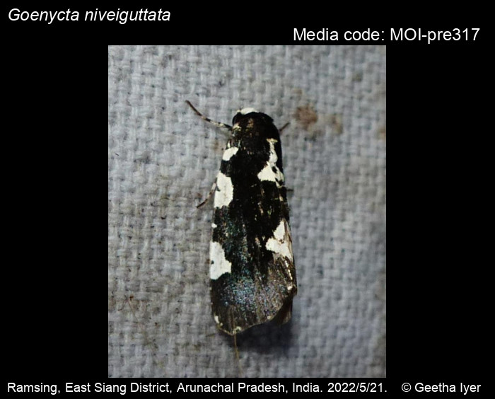 Anonymous 2026. Goenycta niveiguttata (Hampson, 1902) – . In Sondhi, S., R.P. Singh, G. Iyer, J. D'silva and K. Kunte (Chief Editors). Butterflies of India, v. 4.11. Published by the Indian Foundation for Butterflies. URL: https://www.mothsofindia.org/Goenycta-niveiguttata, accessed 2026/03/19.