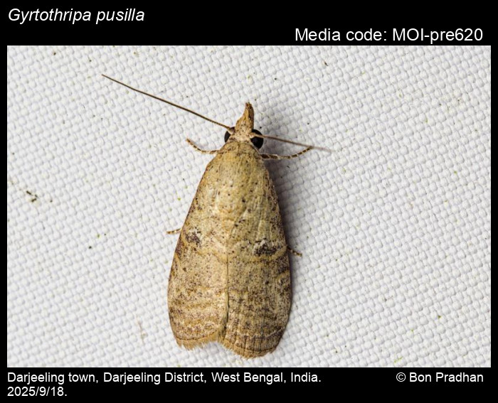 Anonymous 2026. Gyrtothripa pusilla (Moore, 1888) – . In Sondhi, S., R.P. Singh, G. Iyer, J. D'silva and K. Kunte (Chief Editors). Butterflies of India, v. 4.11. Published by the Indian Foundation for Butterflies. URL: https://www.mothsofindia.org/gyrtothripa-pusilla, accessed 2026/03/01.