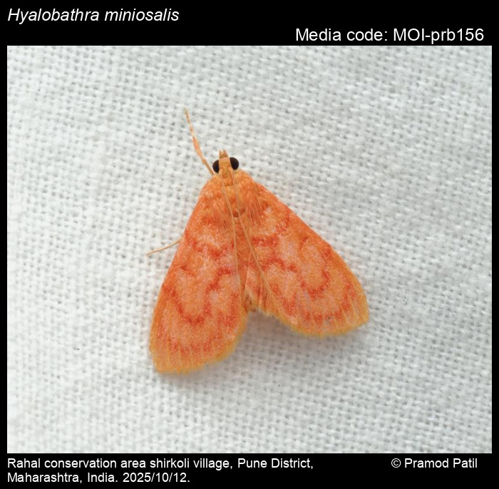 Anonymous 2025. Hyalobathra miniosalis (Guenée, 1854) – . In Sondhi, S., R.P. Singh, G. Iyer, J. D'silva and K. Kunte (Chief Editors). Butterflies of India, v. 4.1. Published by the Indian Foundation for Butterflies. URL: https://www.mothsofindia.org/hyalobathra-miniosalis, accessed 2025/12/07.