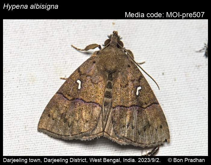 Anonymous 2026. Hypena albisigna (Moore, 1882) – . In Sondhi, S., R.P. Singh, G. Iyer, J. D'silva and K. Kunte (Chief Editors). Butterflies of India, v. 4.11. Published by the Indian Foundation for Butterflies. URL: https://www.mothsofindia.org/Hypena-albisigna, accessed 2026/03/03.