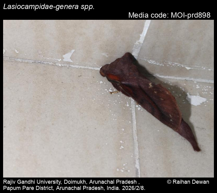 Anonymous 2026. Lasiocampidae-genera spp. NA – . In Sondhi, S., R.P. Singh, G. Iyer, J. D'silva and K. Kunte (Chief Editors). Butterflies of India, v. 4.11. Published by the Indian Foundation for Butterflies. URL: https://www.mothsofindia.org/lasiocampidae-genera-spp, accessed 2026/02/15.