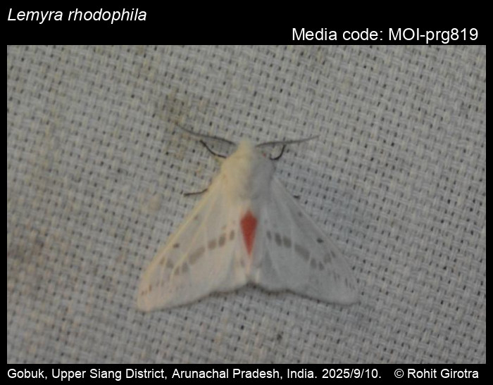 Lemyra rhodophila (Walker, 1864 [1865]). India: Himachal Pradesh east to E. Himalaya, Nagaland, Manipur;
