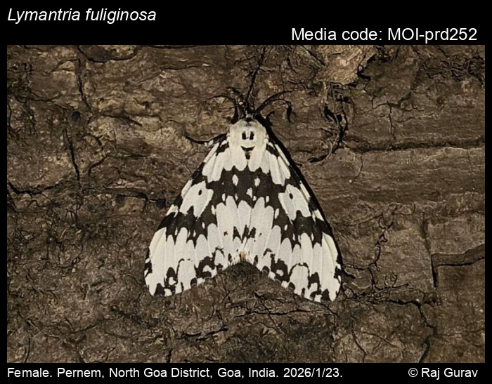 Anonymous 2026. Lymantria fuliginosa Moore, 1883 – . In Sondhi, S., R.P. Singh, G. Iyer, J. D'silva and K. Kunte (Chief Editors). Butterflies of India, v. 4.1. Published by the Indian Foundation for Butterflies. URL: https://www.mothsofindia.org/lymantria-fuliginosa, accessed 2026/01/31.