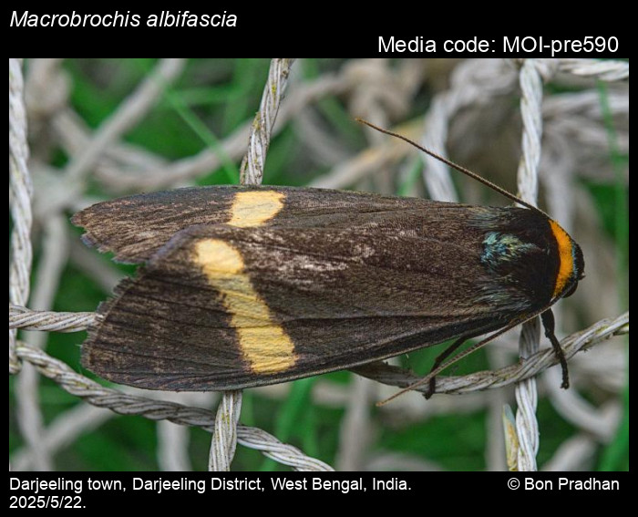 Macrobrochis albifascia (Fang, 1982). India: Uttarakhand, Arunachal Pradesh, Sikkim.