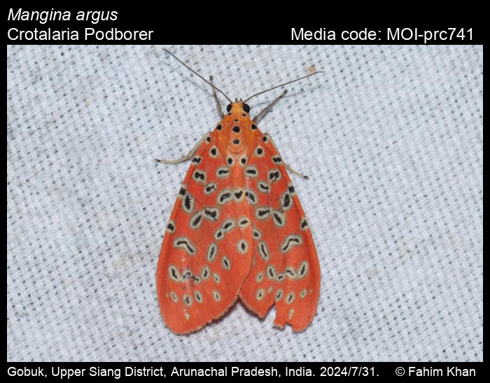 Anonymous 2026. Mangina argus (Kollar, [1844]) – Crotalaria Podborer. In Sondhi, S., R.P. Singh, G. Iyer, J. D'silva and K. Kunte (Chief Editors). Butterflies of India, v. 4.1. Published by the Indian Foundation for Butterflies. URL: https://www.mothsofindia.org/mangina-argus, accessed 2026/01/31.