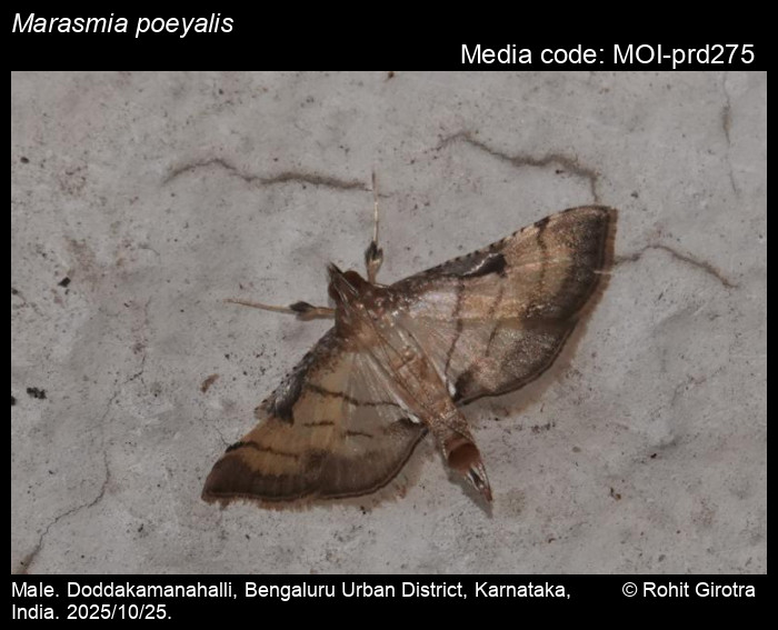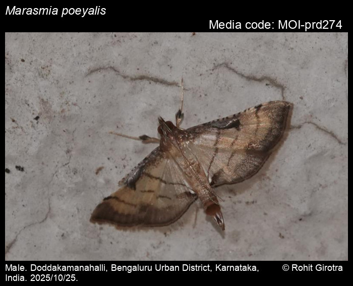 Anonymous 2026. Marasmia poeyalis (Boisduval, 1833) – . In Sondhi, S., R.P. Singh, G. Iyer, J. D'silva and K. Kunte (Chief Editors). Butterflies of India, v. 4.11. Published by the Indian Foundation for Butterflies. URL: https://www.mothsofindia.org/marasmia-poeyalis, accessed 2026/03/01.