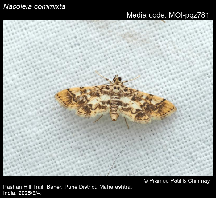 Anonymous 2025. Nacoleia commixta (Butler, 1873) – . In Sondhi, S., R.P. Singh, G. Iyer, J. D'silva and K. Kunte (Chief Editors). Butterflies of India, v. 4.11. Published by the Indian Foundation for Butterflies. URL: https://www.mothsofindia.org/nacoleia-commixta, accessed 2025/10/24.