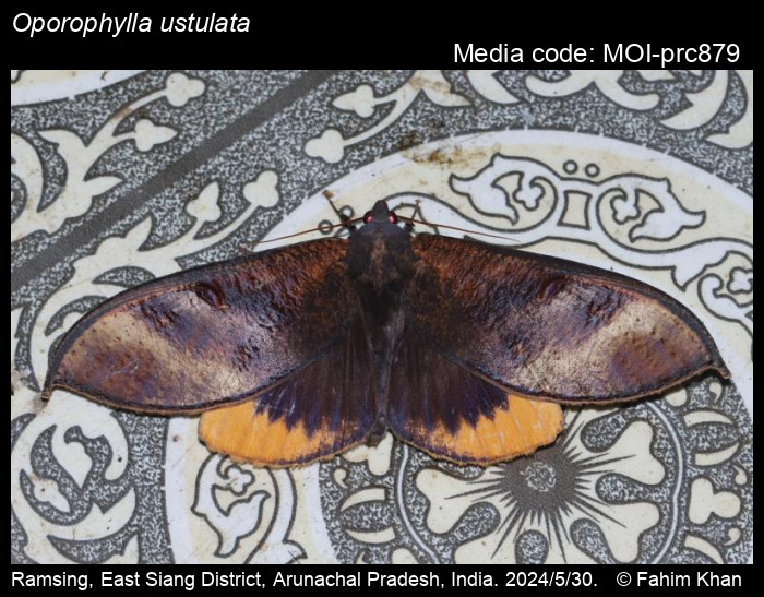 Anonymous 2026. Oporophylla ustulata (Westwood, 1848) – . In Sondhi, S., R.P. Singh, G. Iyer, J. D'silva and K. Kunte (Chief Editors). Butterflies of India, v. 4.1. Published by the Indian Foundation for Butterflies. URL: https://www.mothsofindia.org/oporophylla-ustulata, accessed 2026/01/31.