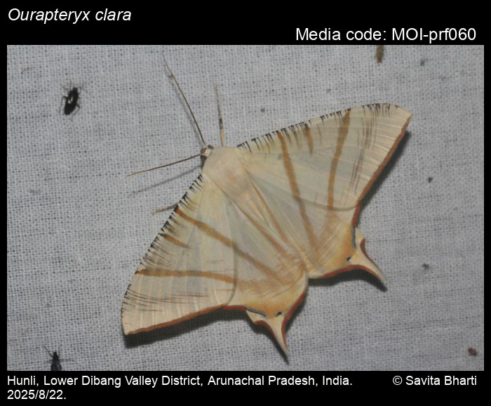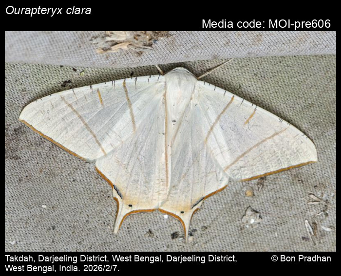 Anonymous 2026. Ourapteryx clara (Butler, 1880) – . In Sondhi, S., R.P. Singh, G. Iyer, J. D'silva and K. Kunte (Chief Editors). Butterflies of India, v. 4.11. Published by the Indian Foundation for Butterflies. URL: https://www.mothsofindia.org/ourapteryx-clara, accessed 2026/03/13.