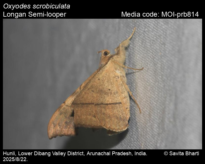 Anonymous 2025. Oxyodes scrobiculata (Fabricius, 1775) – Longan Semi-looper. In Sondhi, S., R.P. Singh, G. Iyer, J. D'silva and K. Kunte (Chief Editors). Butterflies of India, v. 4.1. Published by the Indian Foundation for Butterflies. URL: https://www.mothsofindia.org/oxyodes-scrobiculata, accessed 2025/12/13.