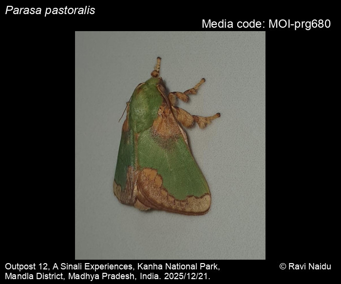Anonymous 2026. Parasa pastoralis Butler, 1885 – . In Sondhi, S., R.P. Singh, G. Iyer, J. D'silva and K. Kunte (Chief Editors). Butterflies of India, v. 4.12. Published by the Indian Foundation for Butterflies. URL: https://www.mothsofindia.org/parasa-pastoralis, accessed 2026/04/08.