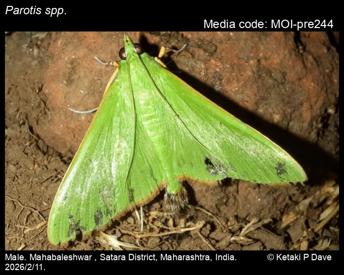 Anonymous 2026. Parotis spp. Hübner, 1831 – . In Sondhi, S., R.P. Singh, G. Iyer, J. D'silva and K. Kunte (Chief Editors). Butterflies of India, v. 4.11. Published by the Indian Foundation for Butterflies. URL: https://www.mothsofindia.org/parotis-spp, accessed 2026/03/01.