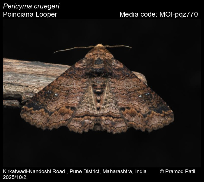 Anonymous 2025. Pericyma cruegeri (Butler, 1886) – Poinciana Looper. In Sondhi, S., R.P. Singh, G. Iyer, J. D'silva and K. Kunte (Chief Editors). Butterflies of India, v. 4.11. Published by the Indian Foundation for Butterflies. URL: https://www.mothsofindia.org/pericyma-cruegeri, accessed 2025/10/18.