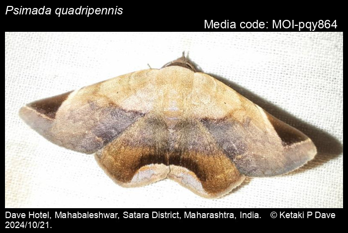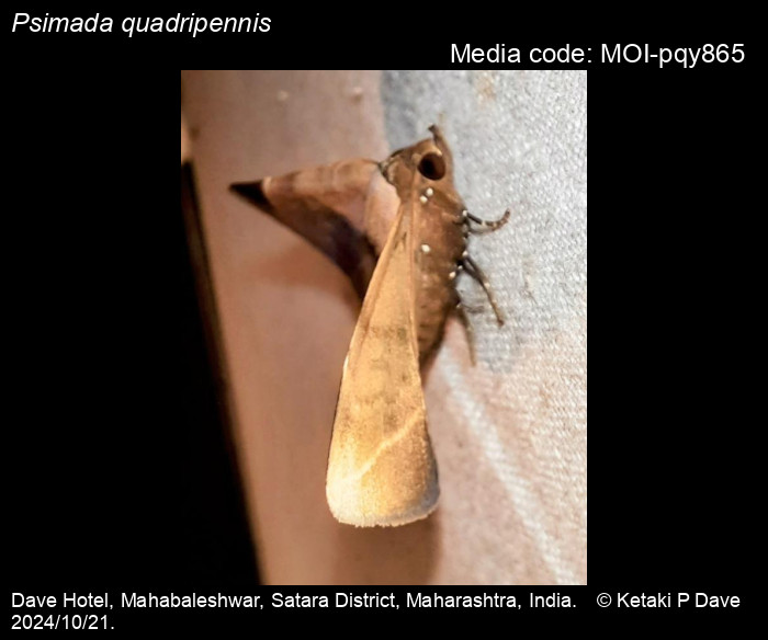 Anonymous 2025. Psimada quadripennis Walker, 1858 – . In Sondhi, S., R.P. Singh, G. Iyer, J. D'silva and K. Kunte (Chief Editors). Butterflies of India, v. 4.11. Published by the Indian Foundation for Butterflies. URL: https://www.mothsofindia.org/psimada-quadripennis, accessed 2025/10/13.