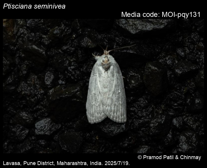 Anonymous 2025. Ptisciana seminivea Walker, 1865 – . In Sondhi, S., R.P. Singh, G. Iyer, J. D'silva and K. Kunte (Chief Editors). Butterflies of India, v. 4.11. Published by the Indian Foundation for Butterflies. URL: https://www.mothsofindia.org/ptisciana-seminivea, accessed 2025/10/16.