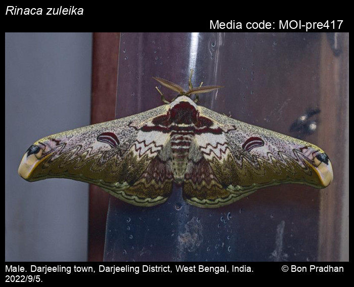 Anonymous 2026. Rinaca zuleika (Hope, 1843) – . In Sondhi, S., R.P. Singh, G. Iyer, J. D'silva and K. Kunte (Chief Editors). Butterflies of India, v. 4.11. Published by the Indian Foundation for Butterflies. URL: https://www.mothsofindia.org/rinaca-zuleika, accessed 2026/03/19.