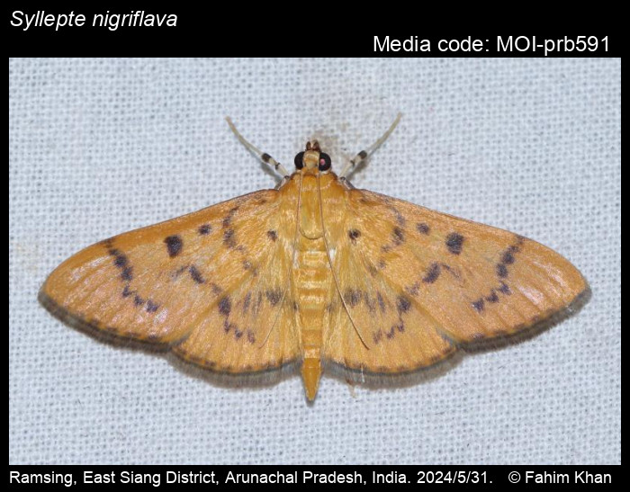 Anonymous 2025. Syllepte nigriflava Swinhoe, 1894 – . In Sondhi, S., R.P. Singh, G. Iyer, J. D'silva and K. Kunte (Chief Editors). Butterflies of India, v. 4.1. Published by the Indian Foundation for Butterflies. URL: https://www.mothsofindia.org/syllepte-nigriflava, accessed 2025/12/03.