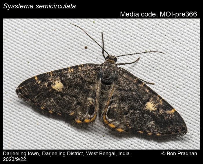 Anonymous 2026. Sysstema semicirculata (Moore, [1868]) – . In Sondhi, S., R.P. Singh, G. Iyer, J. D'silva and K. Kunte (Chief Editors). Butterflies of India, v. 4.11. Published by the Indian Foundation for Butterflies. URL: https://www.mothsofindia.org/sysstema-semicirculata, accessed 2026/03/19.