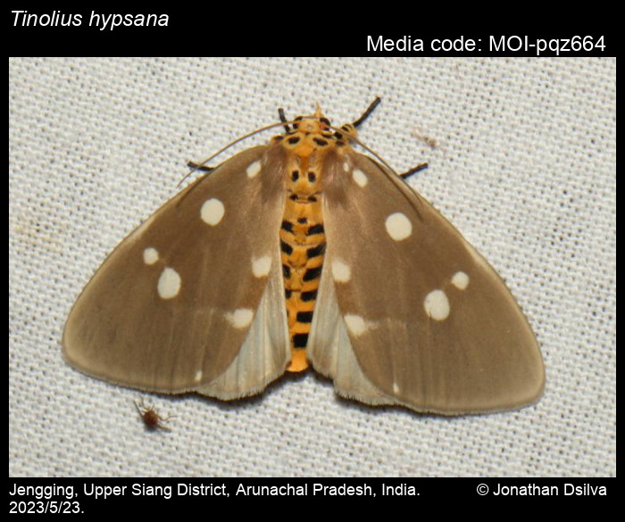 Anonymous 2025. Tinolius hypsana Swinhoe, 1889 – . In Sondhi, S., R.P. Singh, G. Iyer, J. D'silva and K. Kunte (Chief Editors). Butterflies of India, v. 4.11. Published by the Indian Foundation for Butterflies. URL: https://www.mothsofindia.org/tinolius-hypsana, accessed 2025/10/23.