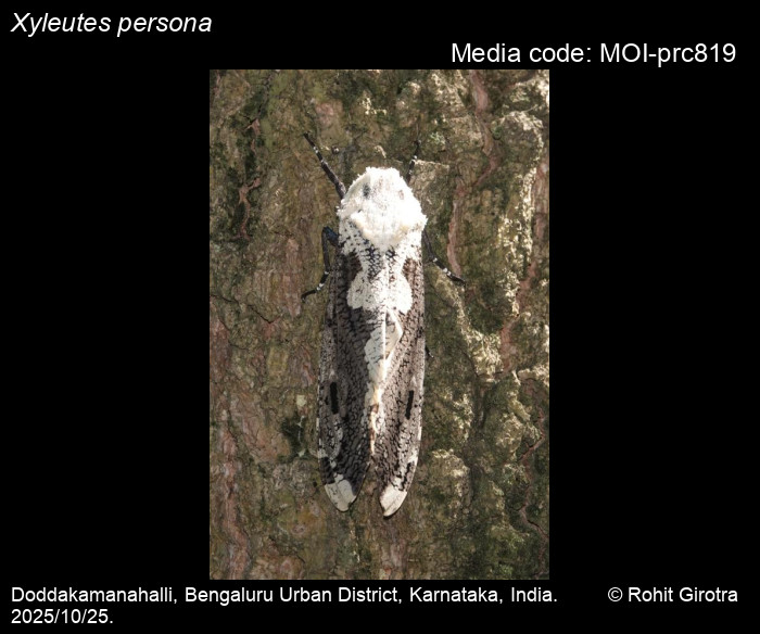 Anonymous 2026. Xyleutes persona (Le Guillou, 1841) – . In Sondhi, S., R.P. Singh, G. Iyer, J. D'silva and K. Kunte (Chief Editors). Butterflies of India, v. 4.11. Published by the Indian Foundation for Butterflies. URL: https://www.mothsofindia.org/xyleutes-persona, accessed 2026/02/15.