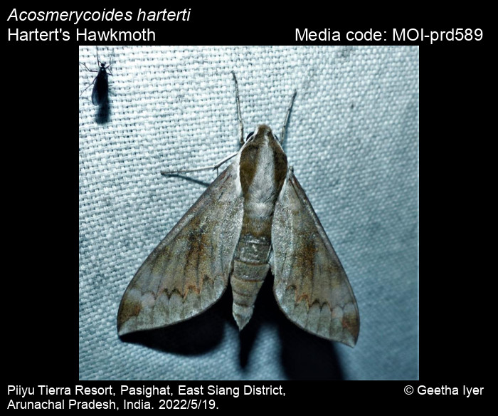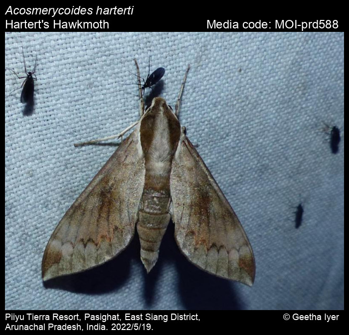 Anonymous 2026. Acosmerycoides harterti (Rothschild, 1895) – Hartert's Hawkmoth. In Sondhi, S., R.P. Singh, G. Iyer, J. D'silva and K. Kunte (Chief Editors). Butterflies of India, v. 4.11. Published by the Indian Foundation for Butterflies. URL: https://www.mothsofindia.org/acosmerycoides-harterti, accessed 2026/02/04.