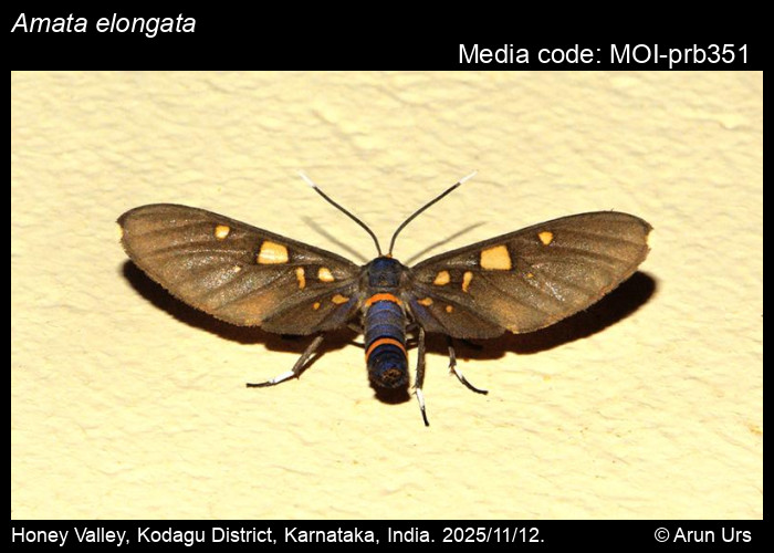 Anonymous 2025. Amata elongata (Hampson, 1900) – . In Sondhi, S., R.P. Singh, G. Iyer, J. D'silva and K. Kunte (Chief Editors). Butterflies of India, v. 4.1. Published by the Indian Foundation for Butterflies. URL: https://www.mothsofindia.org/amata-elongata, accessed 2025/12/08.