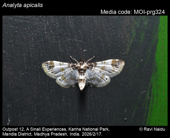 Anonymous 2026. Analyta apicalis (Hampson, 1896) – . In Sondhi, S., R.P. Singh, G. Iyer, J. D'silva and K. Kunte (Chief Editors). Butterflies of India, v. 4.2. Published by the Indian Foundation for Butterflies. URL: https://www.mothsofindia.org/analyta-apicalis, accessed 2026/04/21.