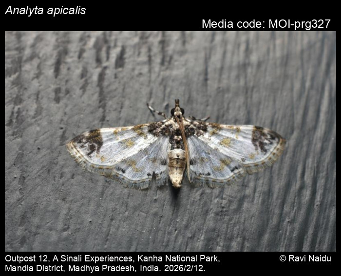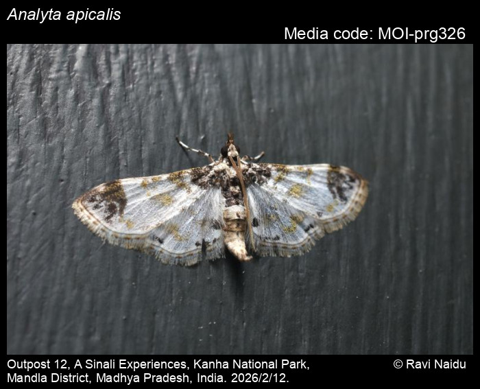 Analyta apicalis (Hampson, 1896). India: Himachal Pradesh (TL: Dharmsala), Arunachal Pradesh, Chandigarh, Karnataka, Maharashtra; Sri Lanka.