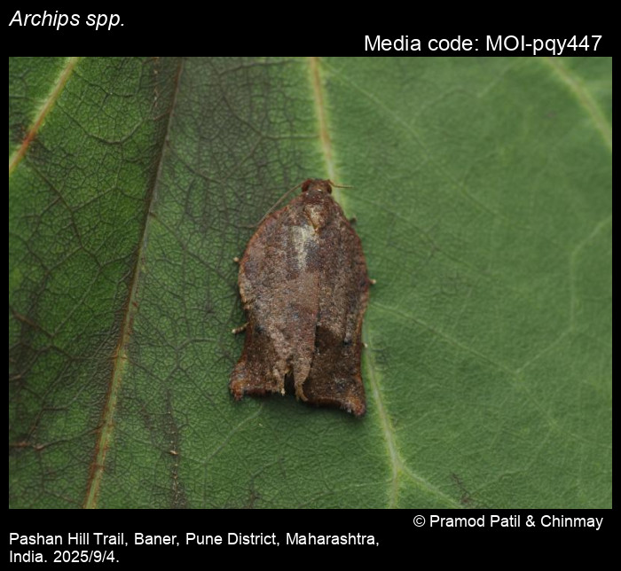Anonymous 2025. Archips spp. Hübner, 1822 – . In Sondhi, S., R.P. Singh, G. Iyer, J. D'silva and K. Kunte (Chief Editors). Butterflies of India, v. 4.11. Published by the Indian Foundation for Butterflies. URL: https://www.mothsofindia.org/archips-spp, accessed 2025/10/21.
